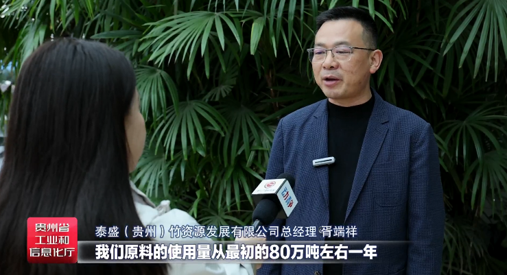 泰盛(贵州)竹资源发展有限公司总经理胥端祥介绍,“十四五”期间,公司原料的使用量从最初的80万吨左右一年,增长到现在每年140万吨左右,生活原纸基本上就在赤水这个地方通过引进下游企业实行本地转化,转化率达到90%以上,引进的下游企业有12家。